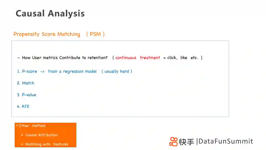 因此我们需要通过构造和去偏的思维方式去分析两个事件之间的关系,采用例如PSM的方法,以推进后续的因果分析。