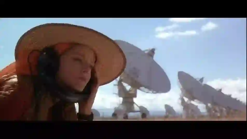 《超时空接触》剧照,女主在全世界最大的矩阵式天文台监听外太空信号