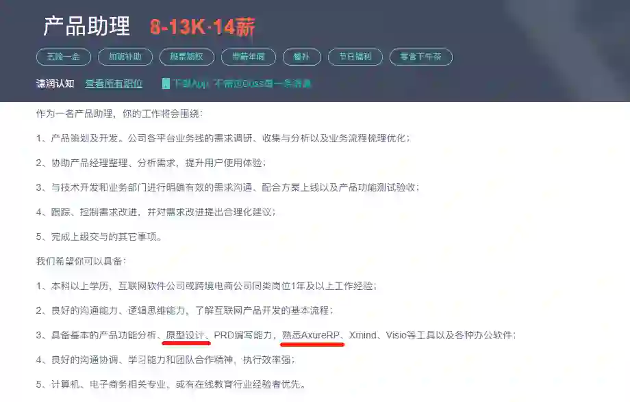 对 0-1 年产品助理,要求掌握Axure原型设计