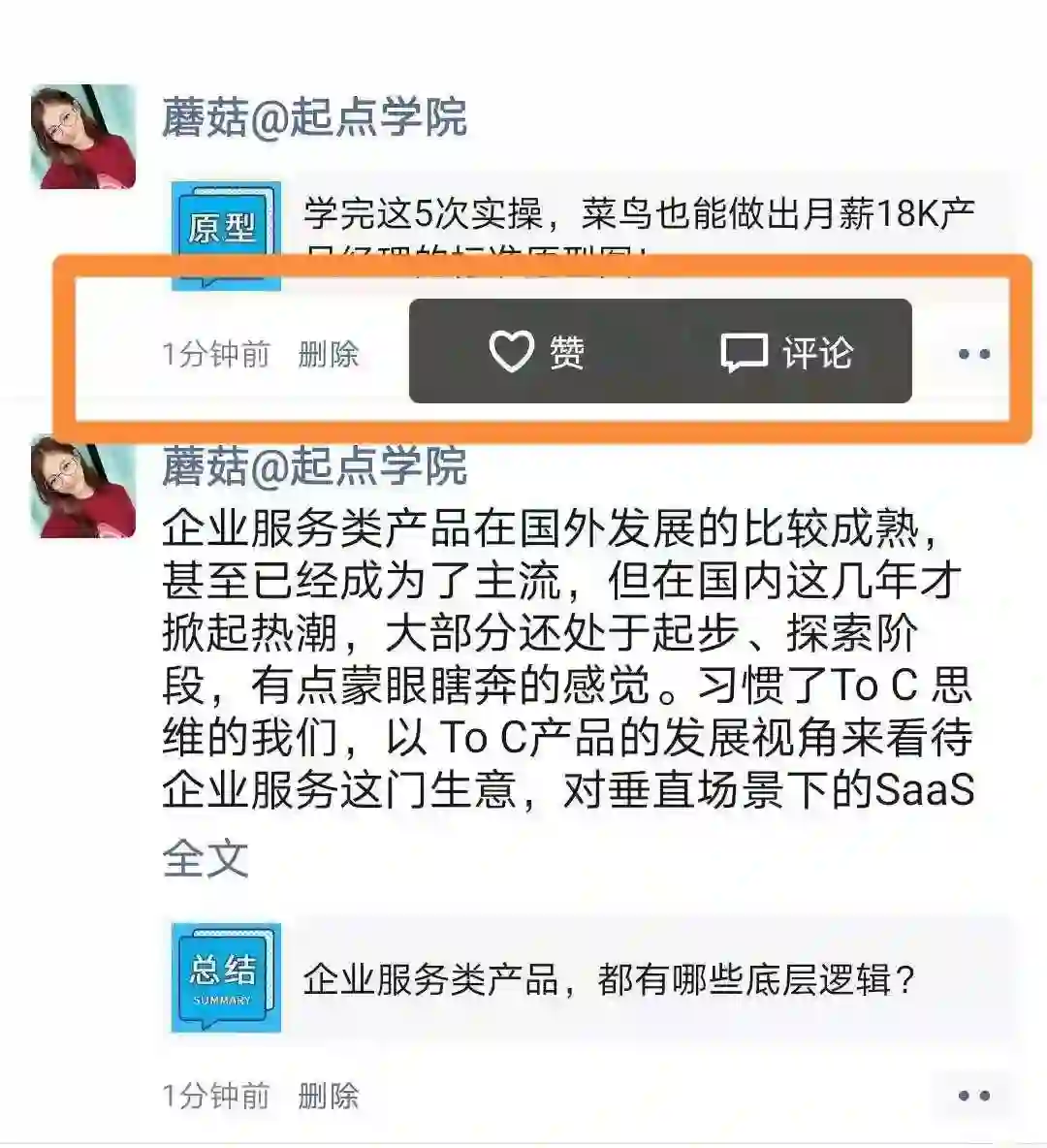 假设放外面,会有200个赞,20条评论。收起来就可能只会有100个赞,10条评论。但这意味着,互动质量的提高。