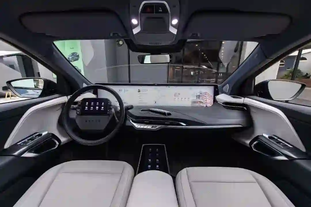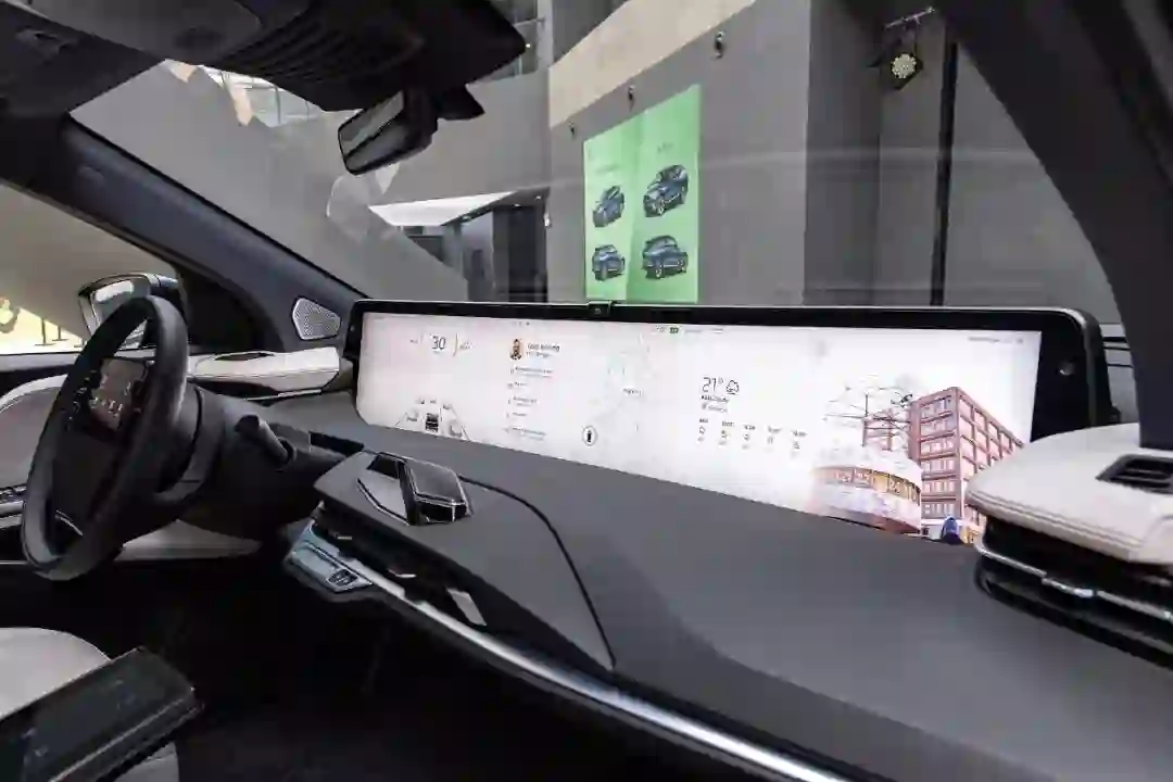 戴雷还向我们透露,这块48英寸的全面屏,是耗时两年多时间与京东方合作打造成车规标准。并且,方向盘及驾驶员触控屏也花了两年多时间开发。在量产版的车型上,还增加了前排中间位置的副驾驶触控屏。