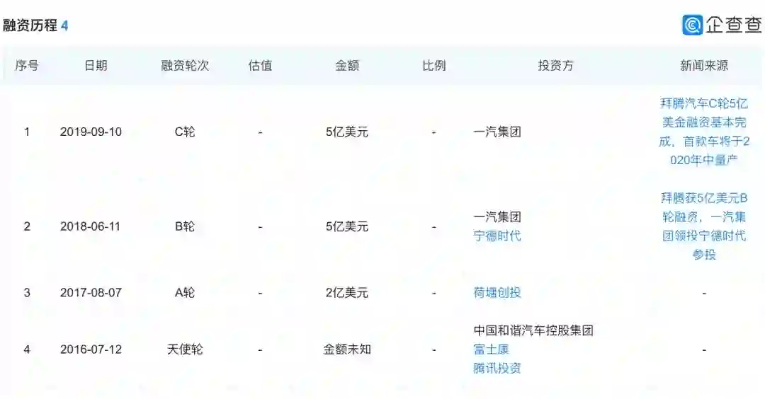 除了一汽,在B轮融资,拜腾的电池供应商宁德时代也参投了它。对于拜腾在动力电池方面的供应,有着不小的优势。