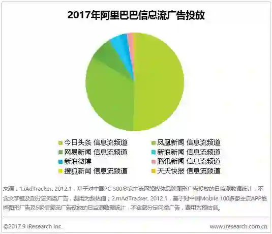 在信息流广告的投放上面,阿里巴巴和京东商城在我们所监测的信息流频道中都有做投放,两者的投放规模也差不多,但各媒体的倾向程度相差较大——京东将绝大部分的资源都投放在了今日头条上,对于阿里而言,除了这个媒体之外,凤凰新闻、网易新闻等媒体分摊的投放比例也很大。