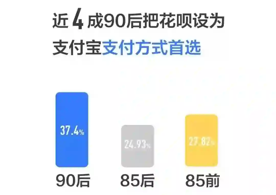 有数据显示,中国近1.7亿90后中,超过4500万开通了花呗,平均每4个90后就有1个人在用花呗进行信用消费。年轻群体是现在信用消费的主要发展对象,方便快捷的花呗主要针对的就是这一战场。