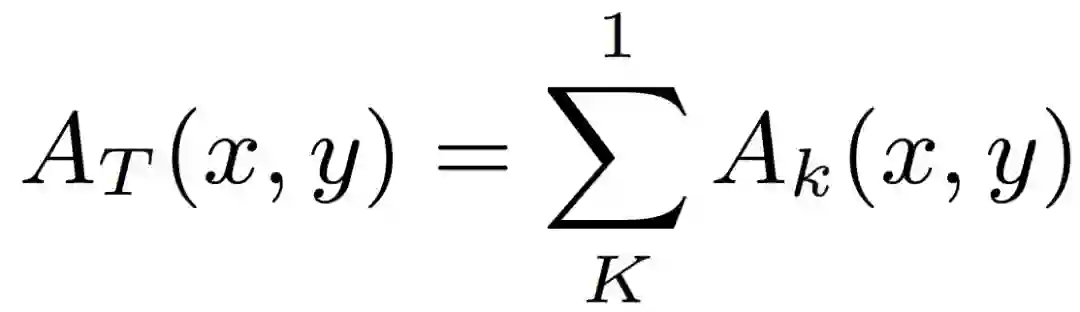 其中,K 是最后一个卷积层中激活的总数。A_T(x, y)的值越大,表明输入图像中相应空间位置 (x, y) 的激活源对分类结果越重要。