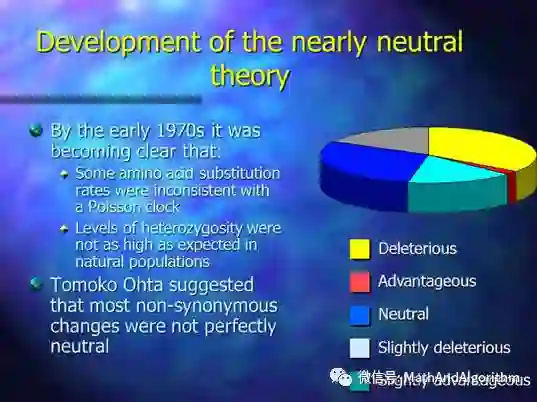 (木村资生指出大多数非同义变化不是完美自然发生的,图中红色优秀基因在饼状图中占比非常小)