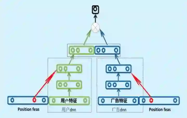 百度的双塔模型分别用复杂网络对“用户特征”和“广告特征”进行了Embedding化,在最后的交叉层之前,用户特征和广告特征之间没有任何交互,这就形成了两个独立的“塔”,因此称为双塔模型。