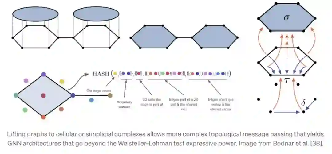 2021 年,单纯复形的消息传递模式解决了图神经网络的许多限制,例如检测某些子结构,捕获远程和高阶交互,处理高阶特征和转译 WL 层次的结构。实践中,在分子属性的预测问题以及轨迹追踪问题中都取得了很好的结果。我预计这些方法将在 2022 年扩展为更为激动人心的新应用,比如用于计算大数据拓扑,关系预测和计算机通信学领域的难题中。