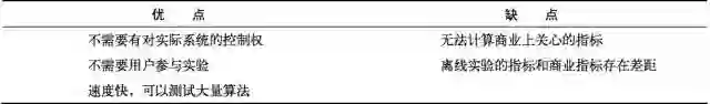 从上面的步骤可以看到,推荐系统的离线实验都是在数据集上完成的,也就是说它不需要一个实际的系统来供它实验,而只要有一个从实际系统日志中提取的数据集即可。这种实验方法的 好处是不需要真实用户参与,可以直接快速地计算出来,从而方便、快速地测试大量不同的算法。它的主要缺点是无法获得很多商业上关注的指标,如点击率、转化率等,而找到和商业指标非常相关的离线指标也是很困难的事情。