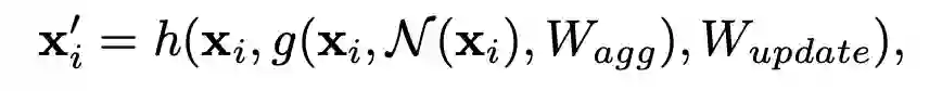 是聚合和更新操作中的可学习参数。更具体地说,聚合运算是通过聚合邻居节点的特征来计算节点的表示: