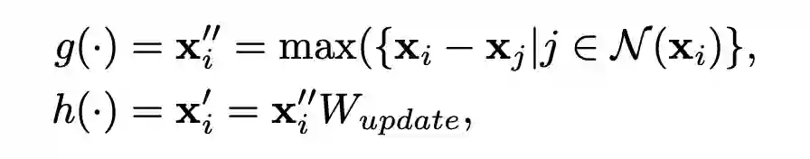 表示节点邻居集合。为了方便和高效,这里采用 max-relative graph convolution: