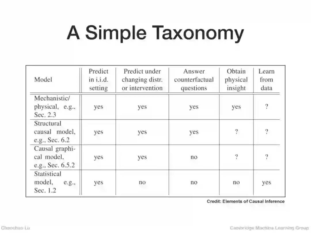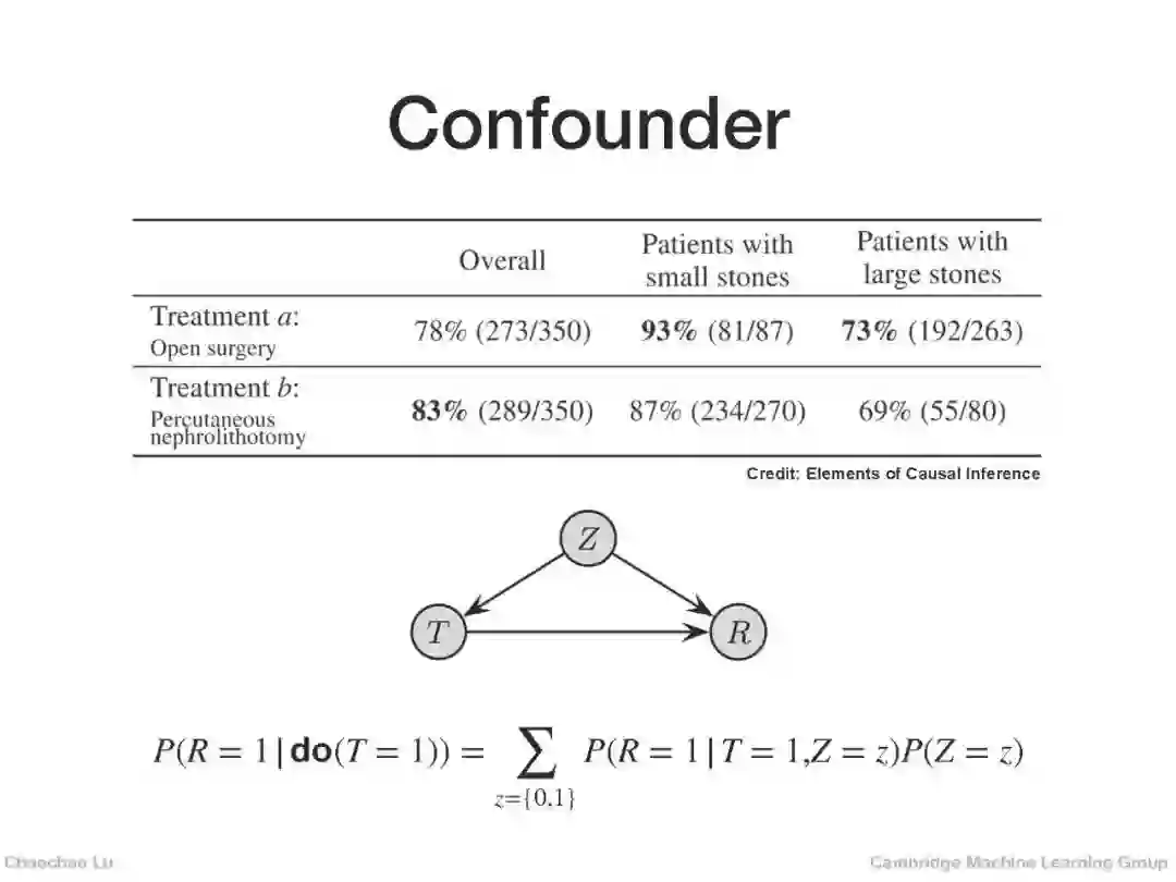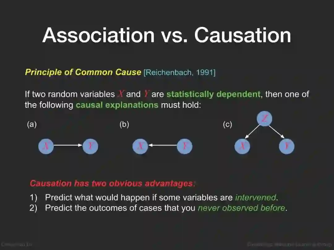 然而,目前成功应用于上述医疗问题的方法仅仅是基于关联而不是因果关系。在统计学中,人们普遍认为关联在逻辑上并不意味着因果关系[10,12]。关联与因果之间的关系由莱辛巴赫·[14]将其形式化为著名的共同原因原理:如果两个随机变量{X}和{Y}在统计学上是相互依存的,那么下面的一个因果解释必须成立:a) {X}导致{Y};b) {Y}导致{X};c)存在一个随机变量{Z},它是引起{X}和{Y}的共同原因。因此,与关联相比,因果关系更进一步,探索变量之间更本质的关系。因果推理的中心任务是揭示不同变量之间的因果关系。理解一个系统的因果结构将使我们具备以下能力:(1)预测如果某些变量被干预会发生什么;(2)评估影响干预及其结果[9]的混杂因素的影响;(3)使我们能够预测以前从未观察到的情况的结果。如果我们将医学中的治疗视为干预,将治疗效果视为结果(例如,理解药物对患者健康的影响,评估未观察到的混杂因素对治疗和患者总体福祉的影响,评估患者疾病的不同治疗的存活率,等等),这些能力正是医疗保健所需要的,但大多数现有的方法尚未具备。这就是为什么因果关系在开发真正智能的医疗保健算法中扮演着关键角色。