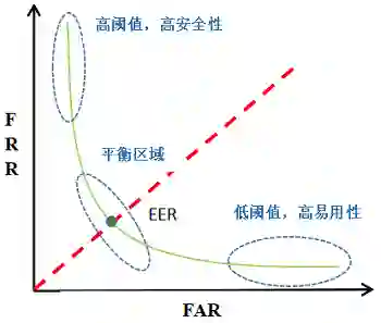 错误接受率:分类问题中,若两个样本为异类(非同一个人),却被系统误认为同类(同一个人),则为错误接受。错误接受率为错误接受案例在所有异类匹配案例的比例。