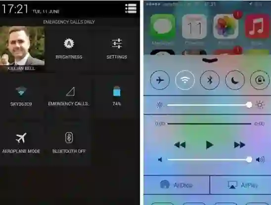 不过苹果控制中心的界面跟早期安卓控制面板非常相像,当时很多人认为苹果“借鉴”了安卓。