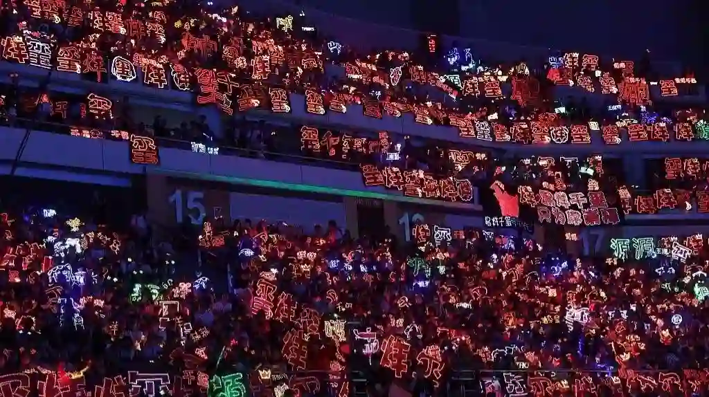 而线下应援物的“重头戏”,是演唱会、大型晚会等线下演出时满场闪烁的灯牌。灯牌一般由粉丝后援会和淘宝卖家谈判砍价,再组织粉丝统一购买,或是收取押金免费租借给去看演出的粉丝。