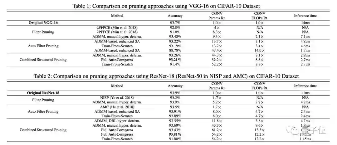 在CIFAR和ImageNet数据集的大量测试表明,AutoCompress的效果显著超过各种神经网络压缩方法与框架。