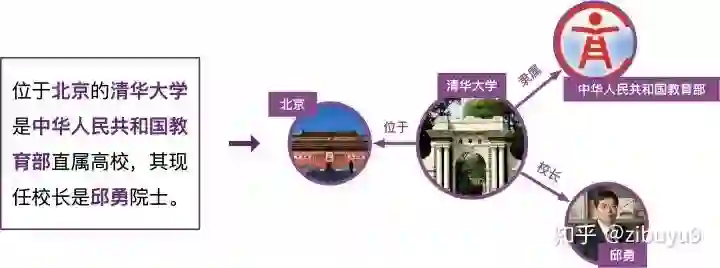 具体来说,给定一个句子和其中出现的实体,实体关系抽取模型需要根据句子语义信息推测实体间的关系。例如,给定句子:“清华大学坐落于北京近郊”以及实体“清华大学”与“北京”,模型可以通过语义得到“位于”的关系,并最终抽取出(清华大学,位于,北京)的知识三元组。