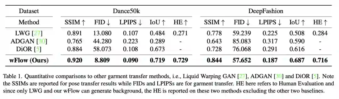 可以说,wFlow (flow in-the-wild)技术方案,相比现有方案有更好的视角效果和客观图像质量评估指标,有效提升了虚拟换装的普适性。