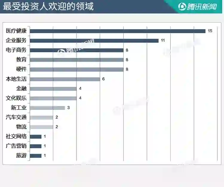 上周最受投资人欢迎的领域为医疗健康领域,该领域共有15个项目获投,其次为企业服务领域共有11个项目获投。