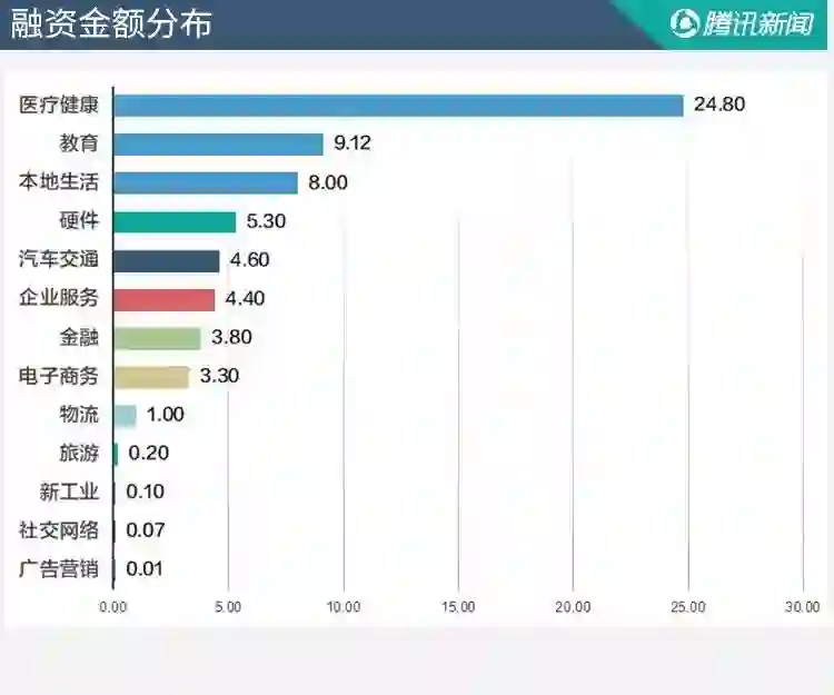 上周共有75个项目获得投资,累计金额超70.13亿人民币,本地生活领域成为上周最吸金的领域,融资金额超过23.3亿人民币,其次为医疗健康领域共获得了16.42亿人民币融资。