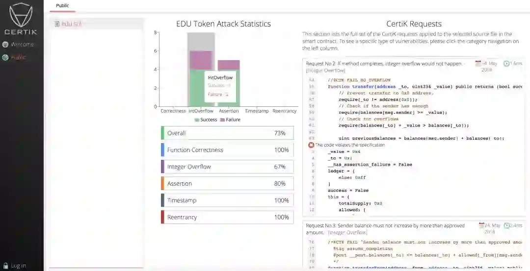 形式化验证技术能有效检测安全漏洞并避免类似错误的产生。小编带你们来看看CertiK的自动化验证平台是如何一键查错的。