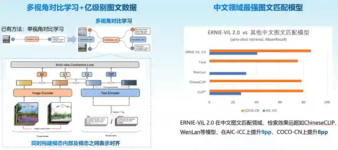 对文心知识增强跨模态理解大模型的创新,提出了基于多视角对比学习的 ERNIE-ViL 2.0