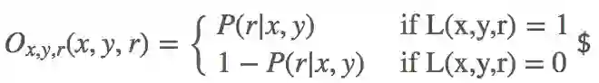 模型的训练数据集是以四元组的形式给出的,形如 $,其中,其中 L(x,y,r) 指示指示 x,y 之间是否存在关系之间是否存在关系 r。具体的: