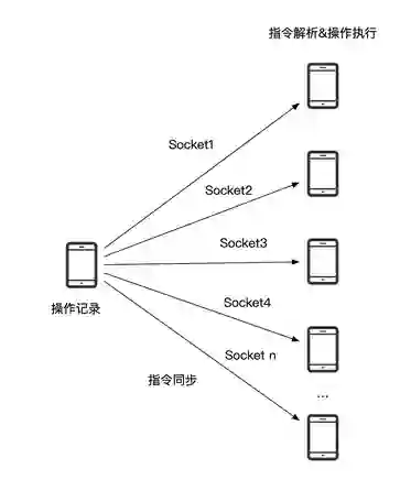 Soloπ 在录制回放能力的基础上实现了一套兼容性测试的解决方案。在录制回放的场景中,我们先是在一台设备上记录了用户的操作,然后再在任意一台设备上实现操作的回放。如果把场景扩展到多台设备上,就可以实现通过一台设备操控多台设备,我们把这套功能称为“一机多控”。具体说来就是主机与从机建立 Socket 连接,然后在主机上将用户的操作实时发送到各个从机,在从机上完成操作的回放。