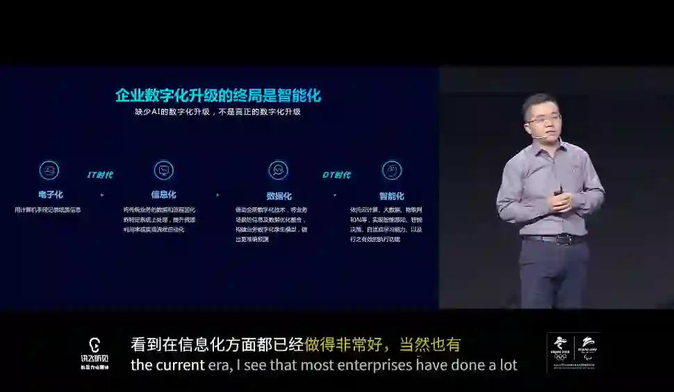 科大讯飞集团副总裁于继栋认为,「企业数字化升级的终局是智能化,AI+大数据已经成为拓宽新局面的决定性因素」。