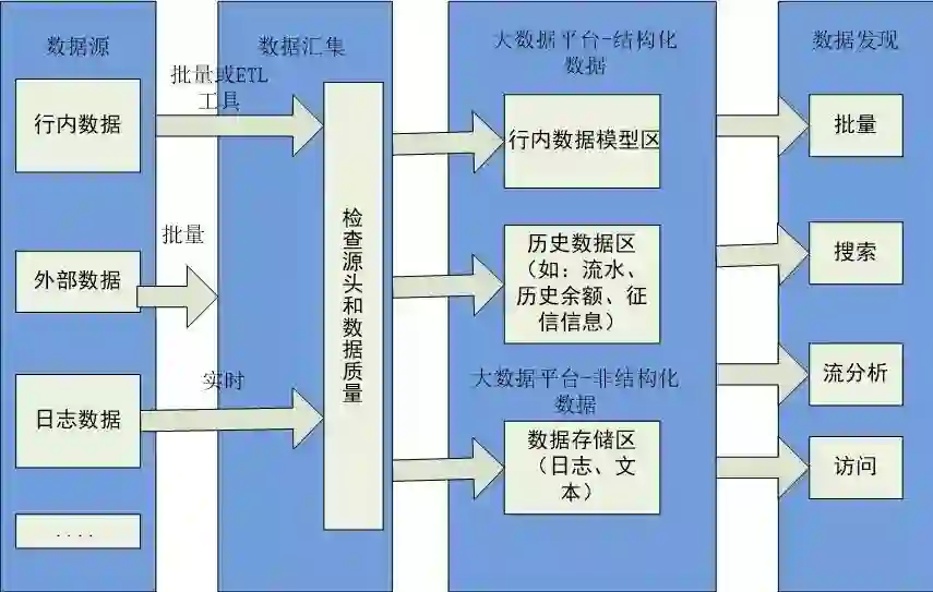 2)外部数据杂乱:外部数据源越来越多,如微博、新闻媒体、淘宝、电商数据等,如何将这些外部数据整理、加工成可供行内正常使用的真实、准确的数据需进一步探索。