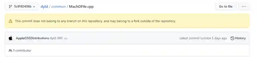 GitHub上的realityOS源码链接:https://github.com/apple-oss-distributions/dyld/blob/5c9192436bb195e7a8fe61f22a229ee3d30d8222/common/MachOFile.cpp#L578