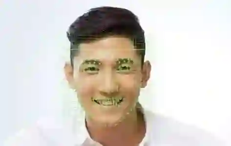 举例说明:输入图像以及输出结果如下,绿色圆点标注出了五官位置。