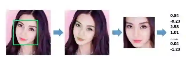 “人脸提特征(Face Feature Extraction)”是将一张人脸图像转化为可以表征人脸特点的特征,具体表现形式为一串固定长度的数值。