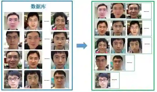 人脸聚类也通过将集合内所有的人脸两两之间做人脸比对,再根据这些相似度值进行分析,将属于同一个身份的人划分到一个组里。