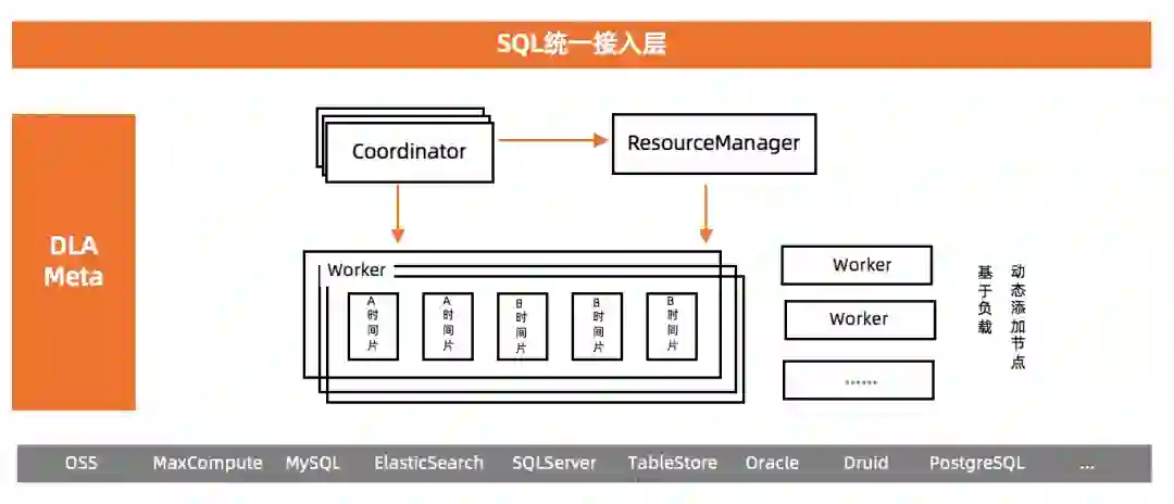 DLA Serverless SQL是基于目前托管于Linux基金会之下的PrestoDB打造的云原生数据湖引擎,Alibaba同时也是Presto基金会成员之一,一直在贡献优化Presto。PrestoDB引擎本身具有优秀的特性: