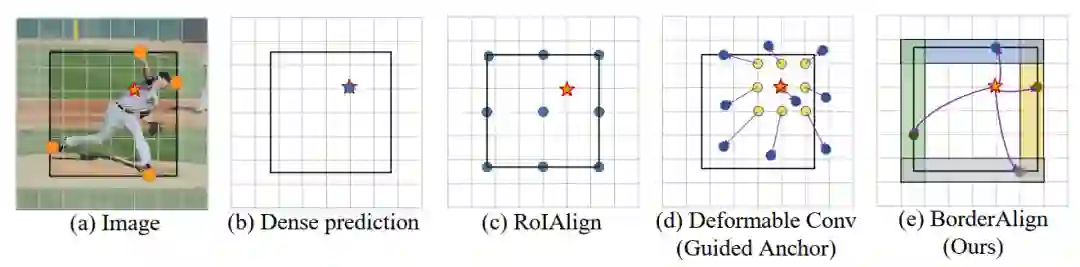 基于上面的观察和简单的实验,我们认为这里面确实有很多油水可以炸。那我们是否能够提出一种简单且通用的操作,来显示提取边界极限点的特征,精准定位物体的框。于是我们开始介绍这个工作的组成,从局部到整体的顺序。(BorderAlign -> BAM -> BorderDet)