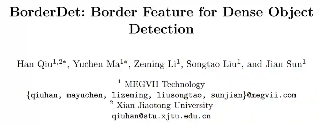 加入旷厂科(ban)研(zhuan)已经1年多了,最近产出一篇目标检测方向的新工作,"BorderDet: Border Feature for Dense Object Detection"。运气还算比较好,是ECCV2020 Oral的一篇工作,可以用于现在主流的dense object detector。基于FCOS的baseline有2.8个点的提升,文章和源码已经release。