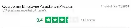 但每经小编(微信号:nbdnews)注意到,在美国一家可匿名点评公司的网站Glassdoor上,百余名高通员工对高通的“员工求助计划”评分仅为3.4分(满分5分,数据更新至2014年11月)。