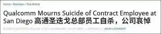 早在2010年和2012年,高通就曾发生过两起类似的员工自杀事件。高通总部所在地圣迭戈当地最大媒体《圣迭戈读者报( San Diego Reader)》资深专栏作者唐·保德(Don Bauder)写道,由于裁员带来的恐惧和财报不佳,高通的士气低迷已经不是一天两天了。