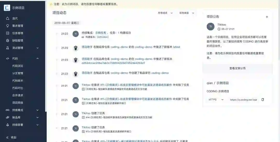 同时他还提供了敏捷开发自动部署,自动化测试等功能。