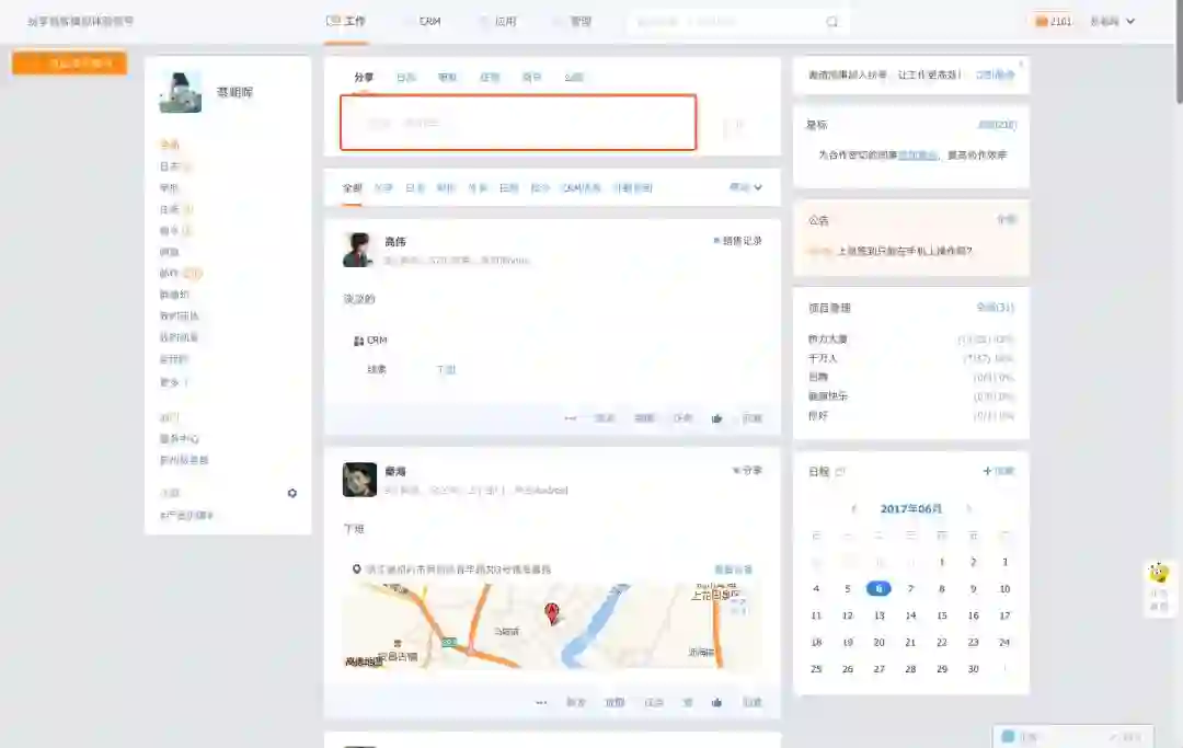 还有签到功能,工作汇报,人员管理,费用报销。它还有专门的同事交流服务。