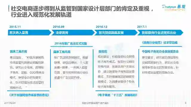 2016年是社交电子商务的爆发元年,网上零售在初显增速放缓中探寻到一条将电子商务与社交媒体相融合的创新模式,极大激活了市场活力。 云集微店和易观联合发布了《2017中国社交电商大数据白皮书》,从社会、经济、商业等层面分析了社交电子商务的发展背景、市场成因,以及作为创新模式在未来的发展趋势。通过聚焦到社交电商典型厂商云集微店进行数据分析,同时挖掘了当前社交电商发展的一些特征。