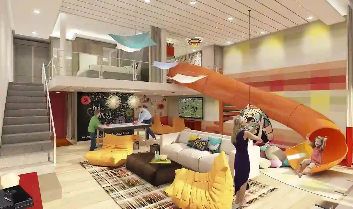 皇家加勒比还没有公布两卧套房的定价,但是他们公开说,两卧套房可住8人(Rauch女士指出,这样的豪华套房对皇家加勒比来说赚不了多少钱,但是在社交媒体上肯定会很火爆。“只要有一家人去度假,把孩子在儿童房里滑滑梯到客厅的视频放上去,简直就是社交媒体上的免费宣传。”)同时,邮轮上还有敬业的皇家魔仆,皇家加勒比为游客配备的私人管家。