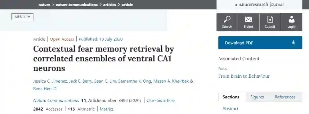 近日,来自美国哥伦比亚大学的研究人员 Rene Hen 和 Jessica Jimenez 等人在 Nature communications 上发表了题为 Contextual fear memory retrieval by correlated ensembles of ventral CA1 neurons 的研究成果,或许能给这个问题提供一个解答。