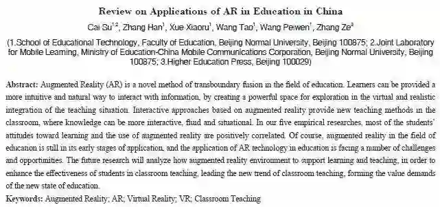 关键词:增强现实;AR;虚拟现实;VR;课堂教学
