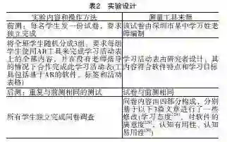 实验前,研究者在教室里的每台计算机上都安装了AR软件。实验设计包含如表2所示的4个部分。