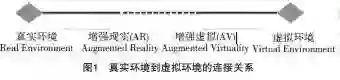 Milgram, Takemura, Utsumi and Kishino[2]定义了真实环境和虚拟环境的连接关系,如图1所示。从字面上理解,在真实环境上叠加虚拟的对象,就好像把现实环境要展示的内容“增强”了,所以就叫“增强现实”,反之即是“增强虚拟”。