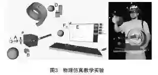 Vienna理工大学研究人员展示了AR技术在力学教学中的应用[7],如图3所示。它利用一个为电脑游戏所开发的物理引擎来实时模拟力学领域的物理实验,学生可以积极主动地在一个三维虚拟世界中创建自己的试验并加以研究。在实验之前、实验过程中和实验结束后,该系统均提供了多样化的工具,用以分析目标物体的受力、质量、运动路径等物理量。但该系统需要较昂贵的头盔、立体眼镜等设备。