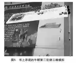 蔡苏、宋倩和唐瑶[12]提出增强现实学习环境的架构,并基于此实现了一个增强现实概念演示书——未来之书。选取了中学物理中的单摆、牛顿第一定律、牛顿第二定律等实验进行虚实结合的展示,如图5所示。学习者只需通过简单的设备即能直观感受到平面书籍中所描述的实验场景,增强了学习者的兴趣。未来之书参展2010年第十七届北京国际图书博览会,获得好评。