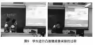 在教师指导学生如何使用AR工具后,实验组的学生借助A R 工具来探究凸透镜成像的规律。同时,对照组的学生通过传统教学方法来学习相同的规律。图9展示了学生进行凸透镜成像实验的过程。